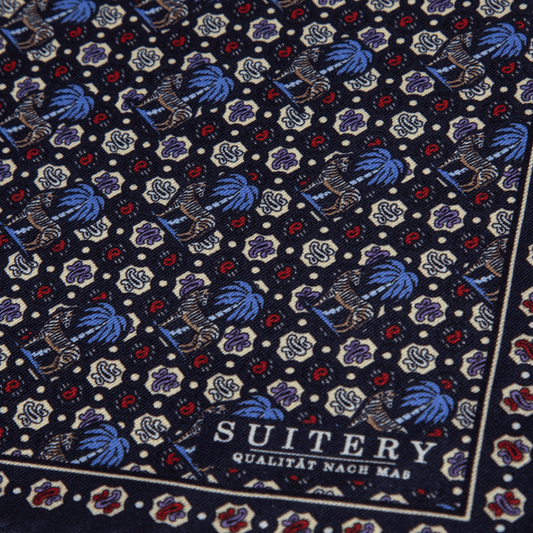 Einstecktuch Seide Print Zebra Navy Made in England