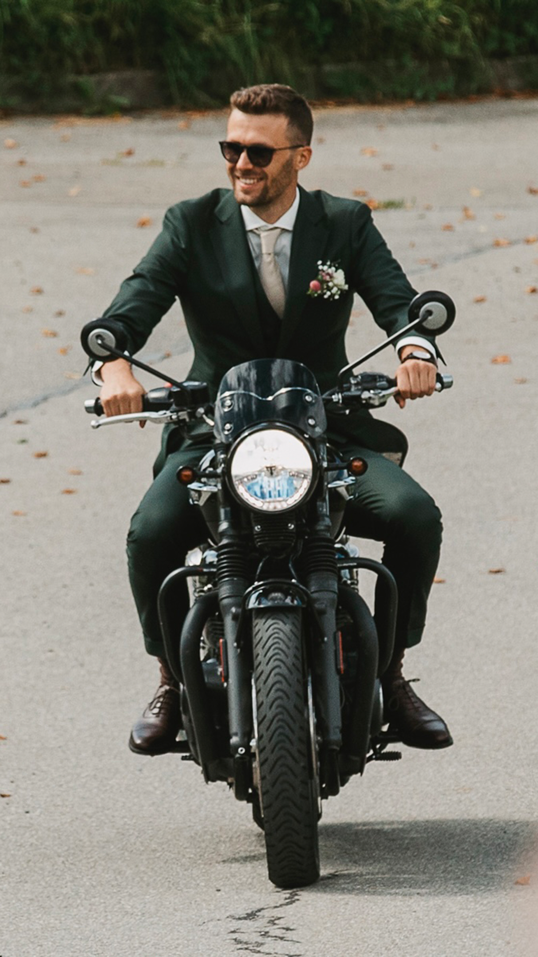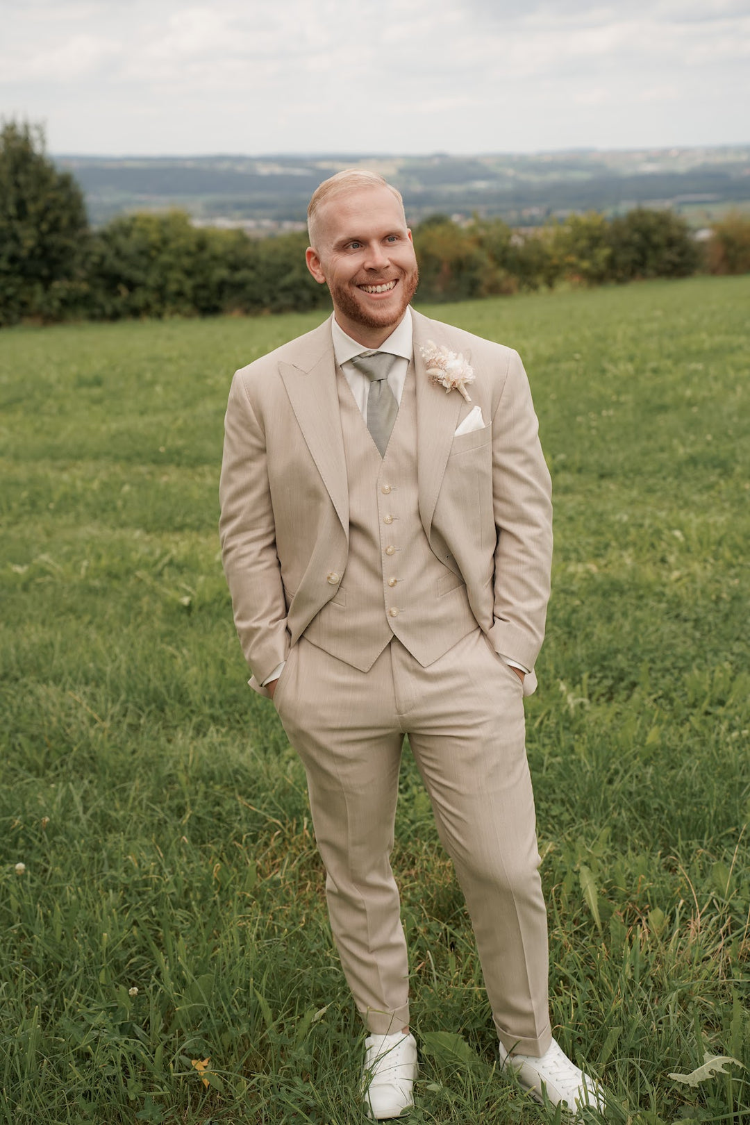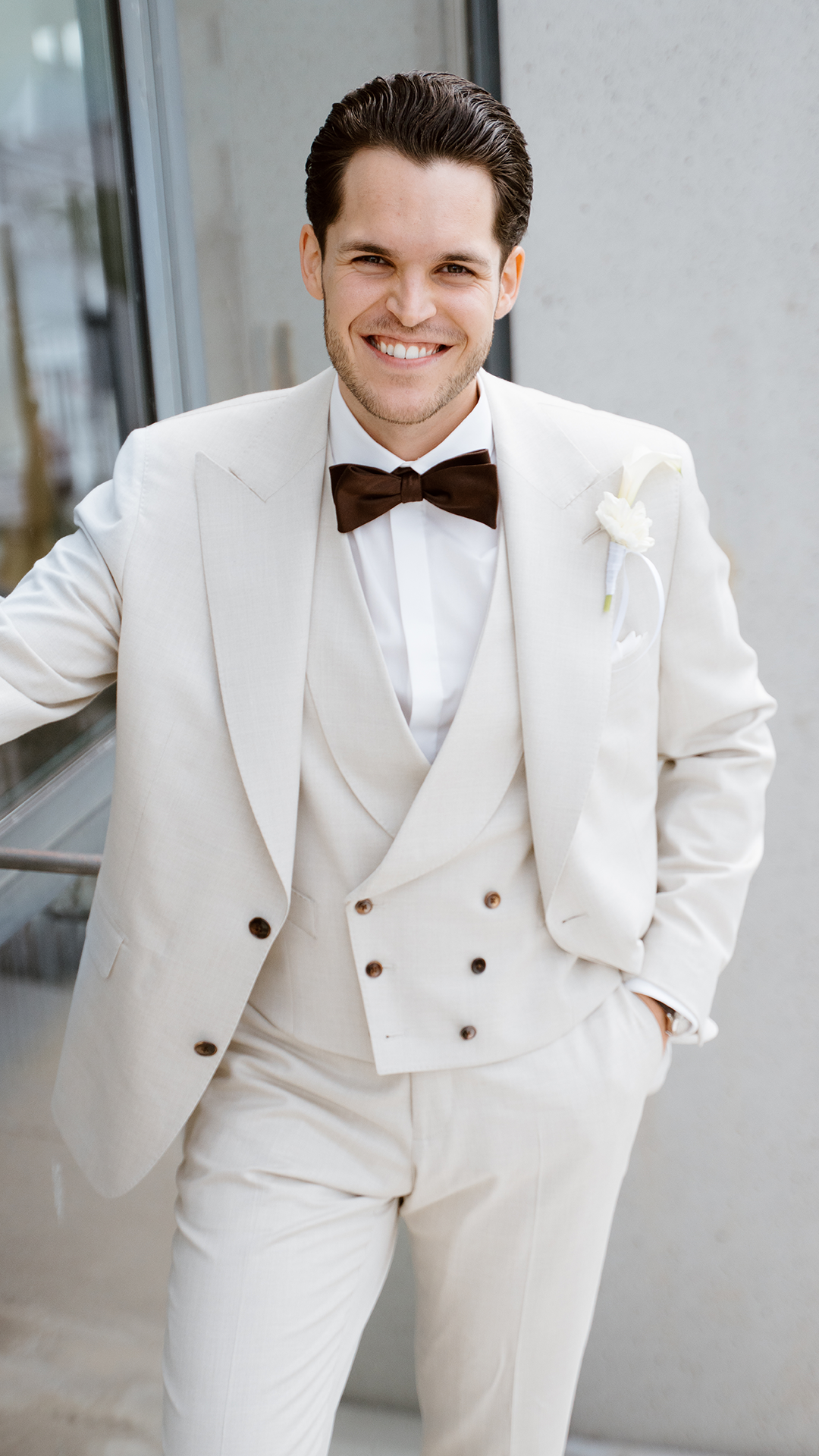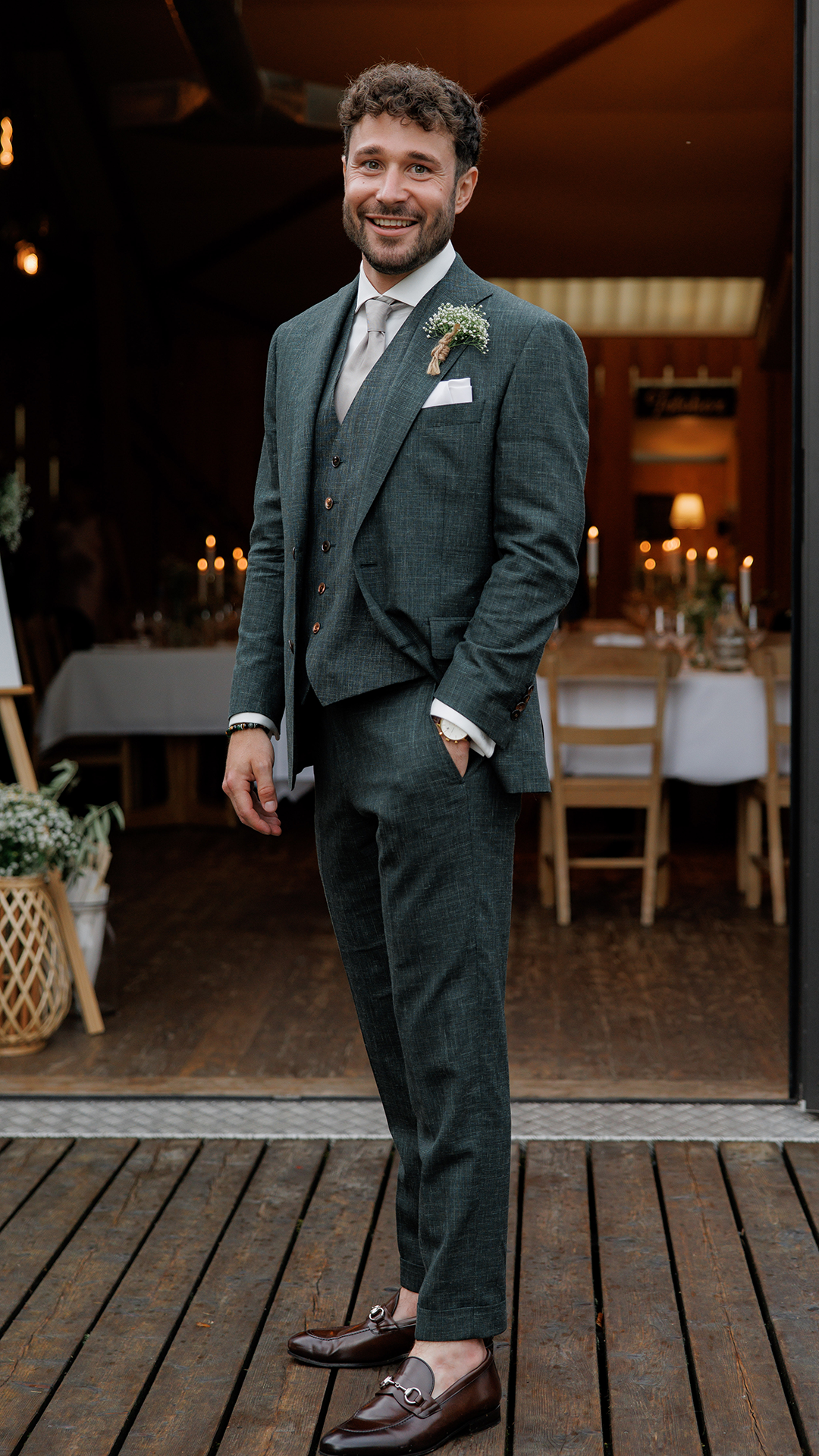 Mitbringen musst du nichts Spezielles – hilfreich sind aber Inspirationen, Fotos oder Moodboards, die deiner Vorstellung vom Hochzeitsanzug entsprechen (z. B. Schnitt, Farbe, Stoff, Details).