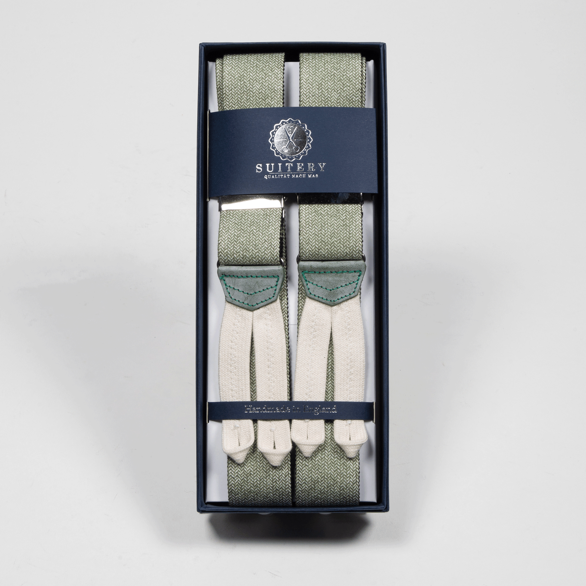 Ergänzen Sie Ihr Outfit mit den eleganten Suitery Hosenträgern in Pistaziengrün, die zeitlosen Stil und hochwertige Handwerkskunst vereinen. Diese breiten Hosenträger sind die perfekte Wahl für Männer, die Wert auf einen dezenten, aber stilvollen Look legen.