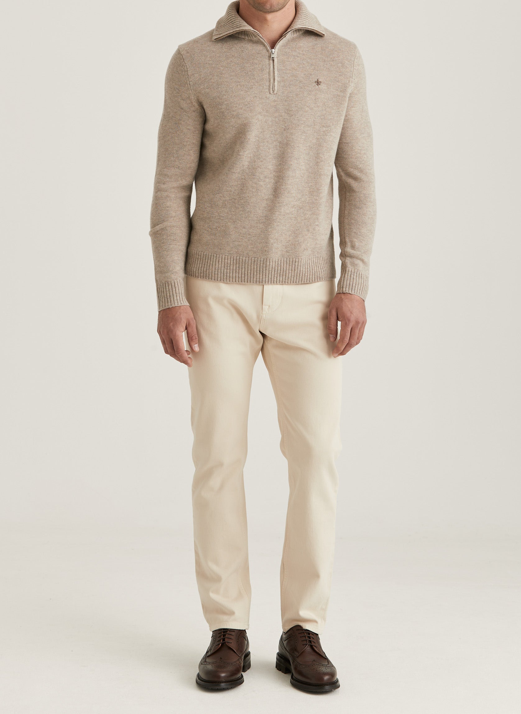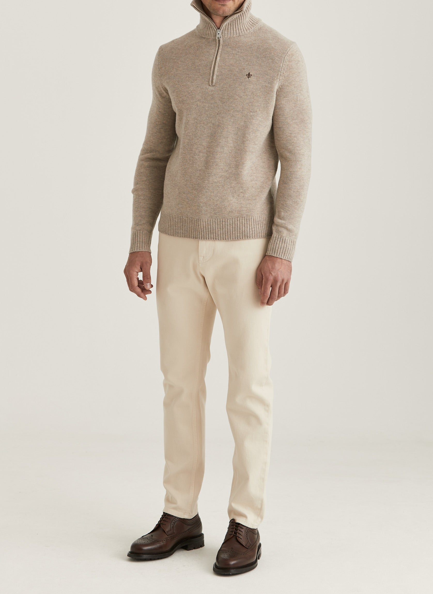 Der Hertford Zip von Morris Stockholm ist Teil der exklusiven Lambswool-Serie für den Herbst 2024. Gefertigt aus 100 % Merinowolle bietet er höchsten Tragekomfort und überzeugt mit sorgfältig gearbeiteten fully-fashioned Details. Der gerade Schnitt und der praktische Reißverschluss machen die Jacke vielseitig kombinierbar und bieten unzählige Styling-Optionen.