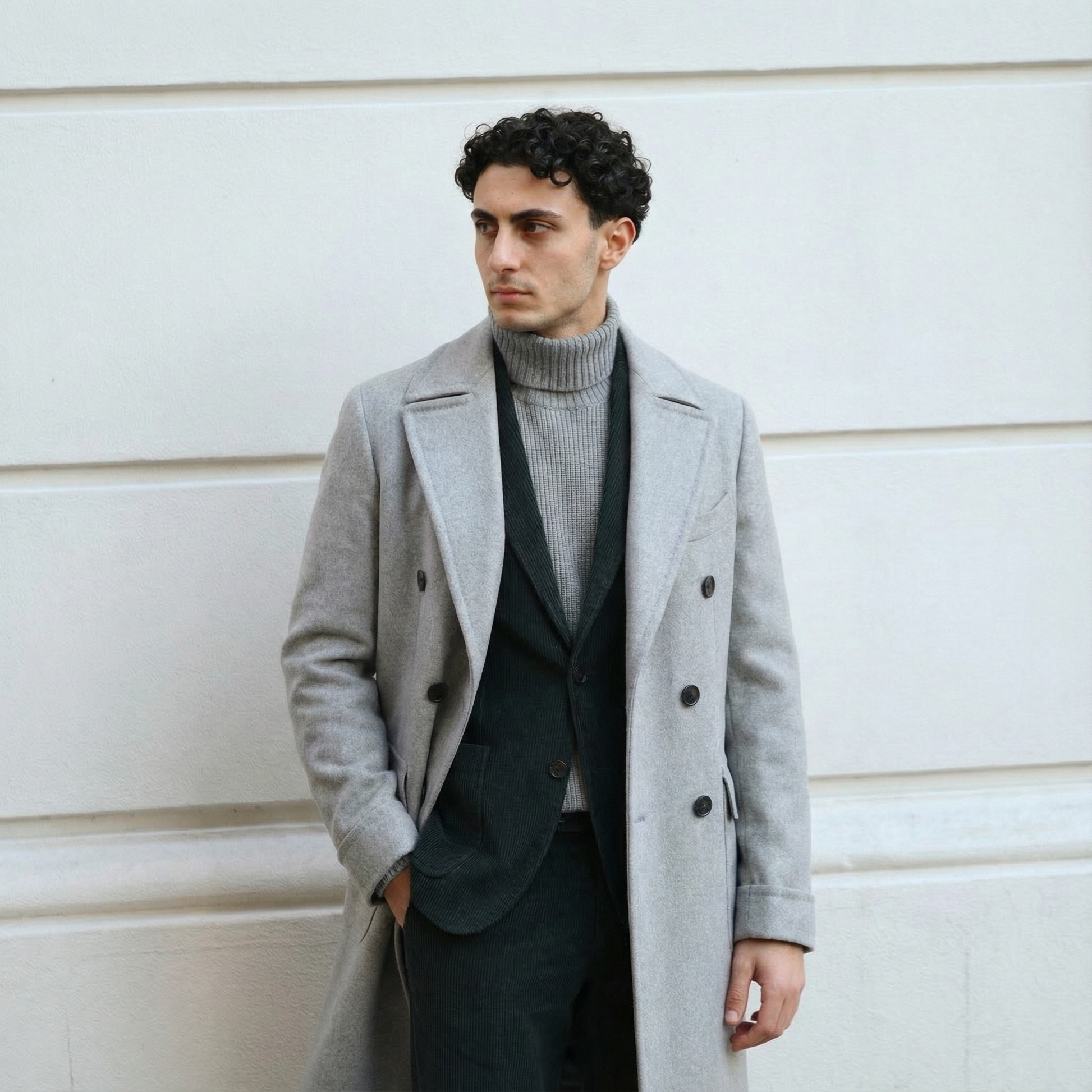 Dieser hellgraue Mantel mit Doppelreiher besticht durch seine italienische Handwerkskunst, gefertigt in Neapel, und hochwertige Verarbeitung. Der Mantel besteht aus einem reinen Wollstoff und ist komplett unkonstruktet. Das zeitlose Design sorgt für eine elegante Silhouette, während die sorgfältig ausgewählten Materialien für angenehmen Tragekomfort und Langlebigkeit stehen. Ideal für anspruchsvolle Anlässe und den stilbewussten Alltag.