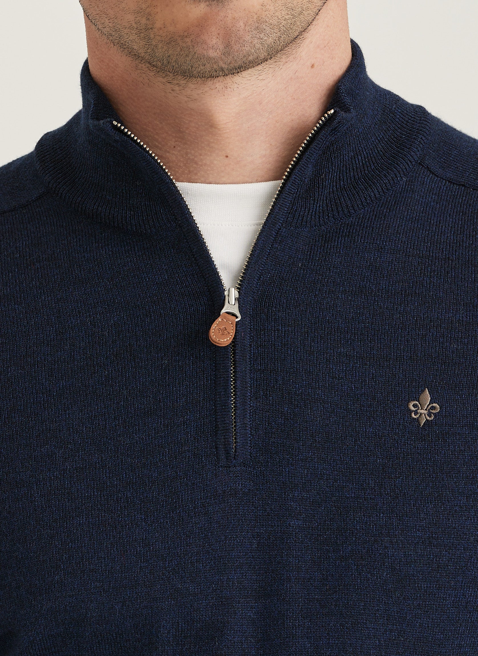 Der Merino Zip von Morris Stockholm ist ein edel gestrickter Pullover aus hochwertiger Merinowolle, gefertigt aus Garn von Biella Südwolle. Merinowolle ist ein natürliches Material mit temperaturregulierenden Eigenschaften, was den Pullover zu einem vielseitigen Begleiter für das ganze Jahr macht – ideal für warme und kühle Monate gleichermaßen.