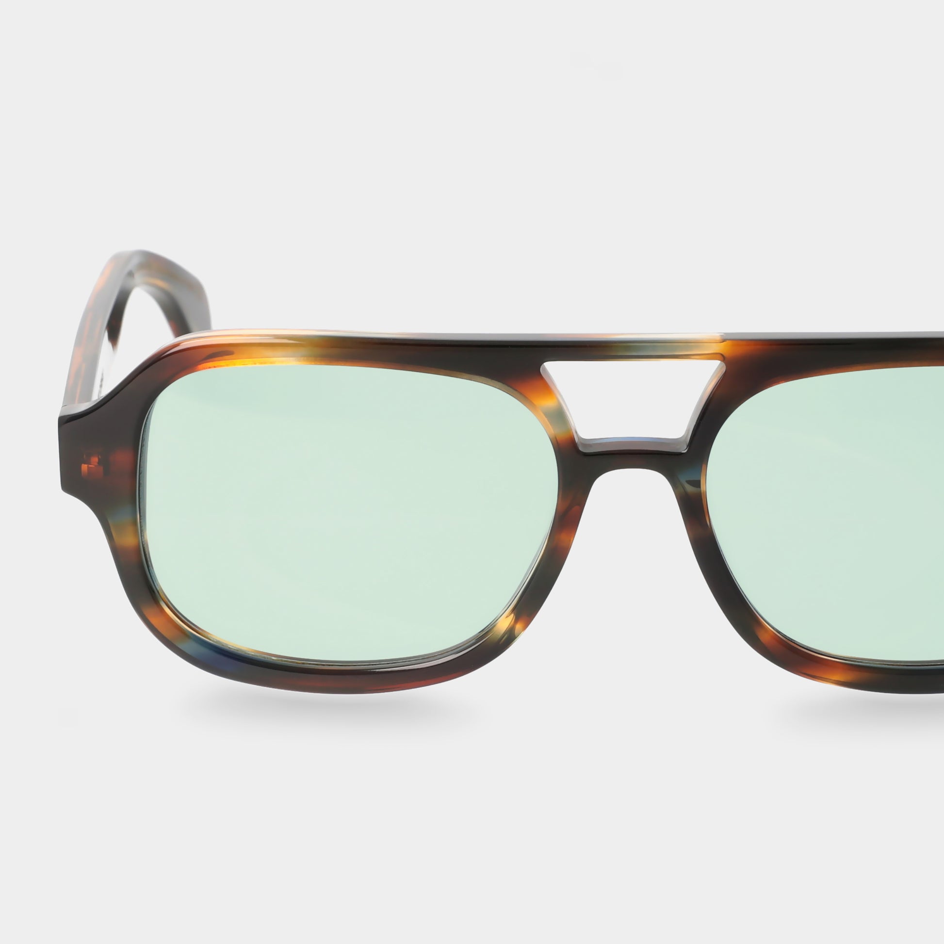 Die Sonnenbrille von TBD Eyewear, Gianni River, mit hellgrünen Gläsern bringt Frische und Vielseitigkeit in ein Design im kühnen Retro-Stil .