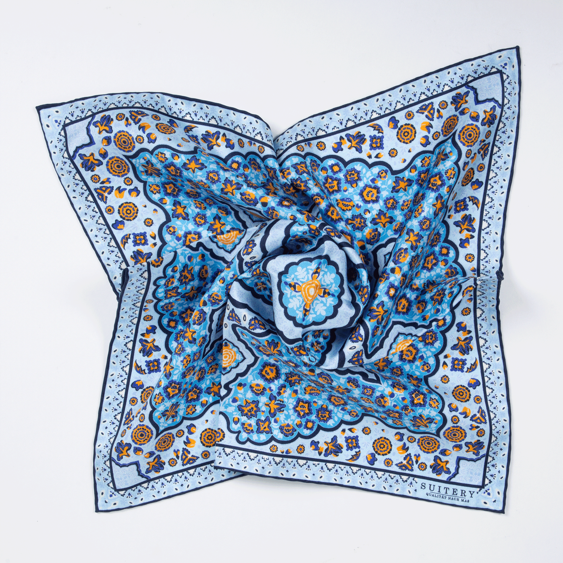 Einstecktuch Seide Mandala Babyblue Made in England