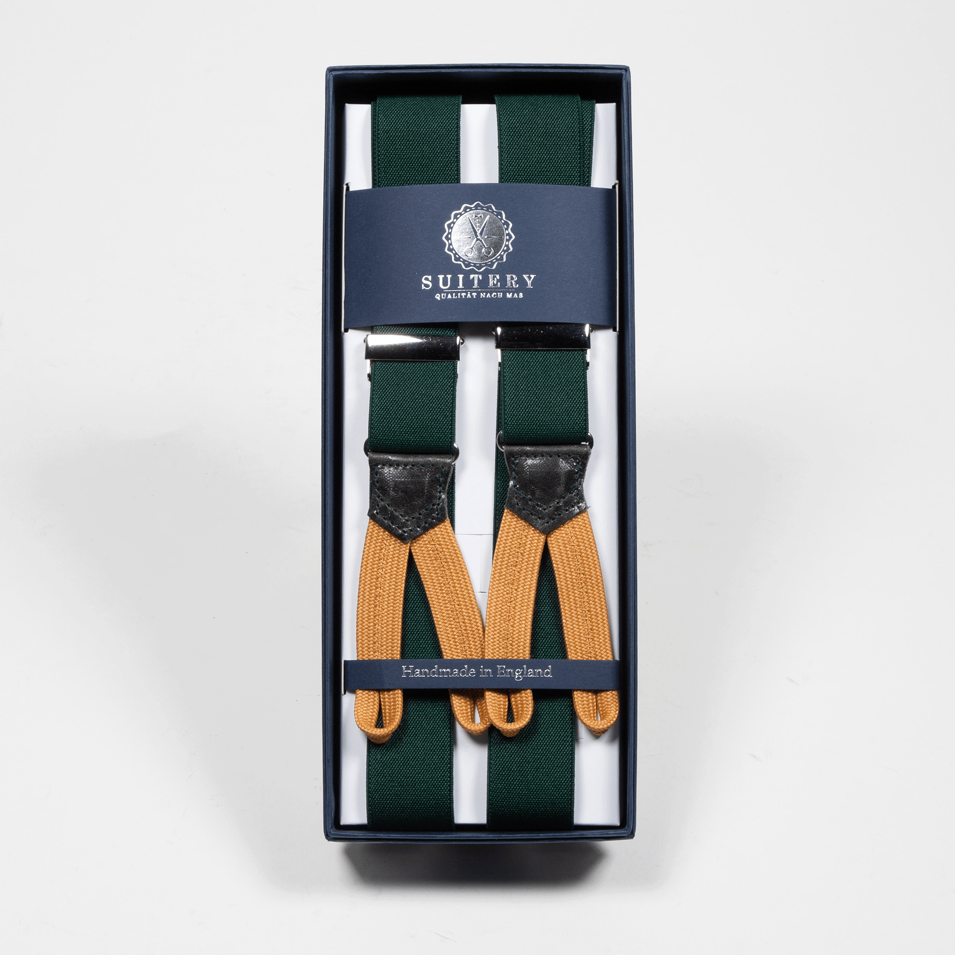 Bringen Sie klassischen Stil in Ihre Garderobe mit den Suitery Hosenträgern in schmaler Ausführung und elegantem Grün. Der zeitlose Farbton macht diese Hosenträger zu einem vielseitigen Accessoire, das sich perfekt für formelle Anlässe oder den Alltag eignet.