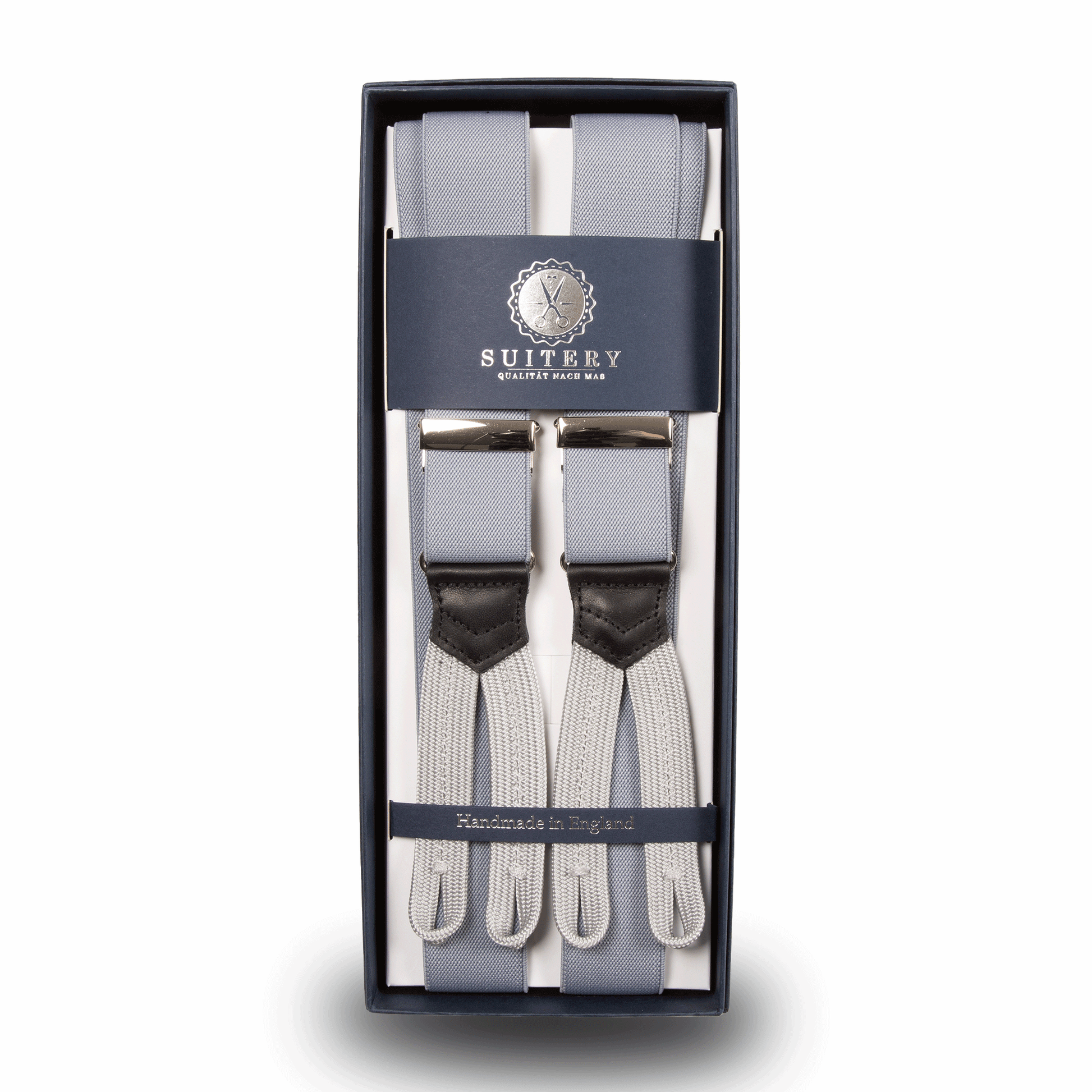 Zeitlos, elegant und vielseitig – die Suitery Hosenträger in schmaler Ausführung und in Hellgrau sind das perfekte Accessoire für jeden Anlass. Ihr schlankes Design verleiht jedem Outfit eine dezente und dennoch stilvolle Note, ideal für formelle und legere Looks.