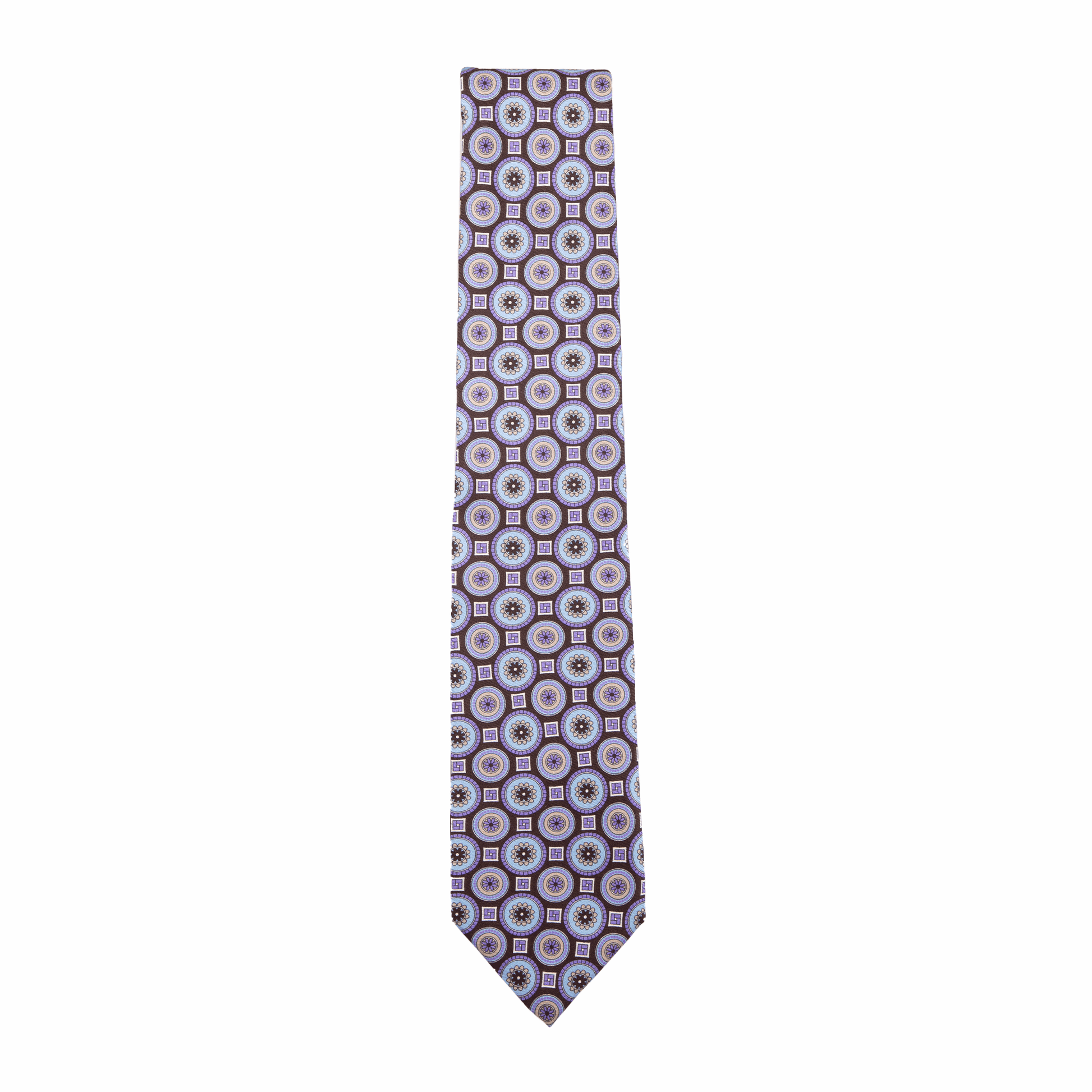 Krawatte Seide Print Medallion Made in Italy Lila Light Blue