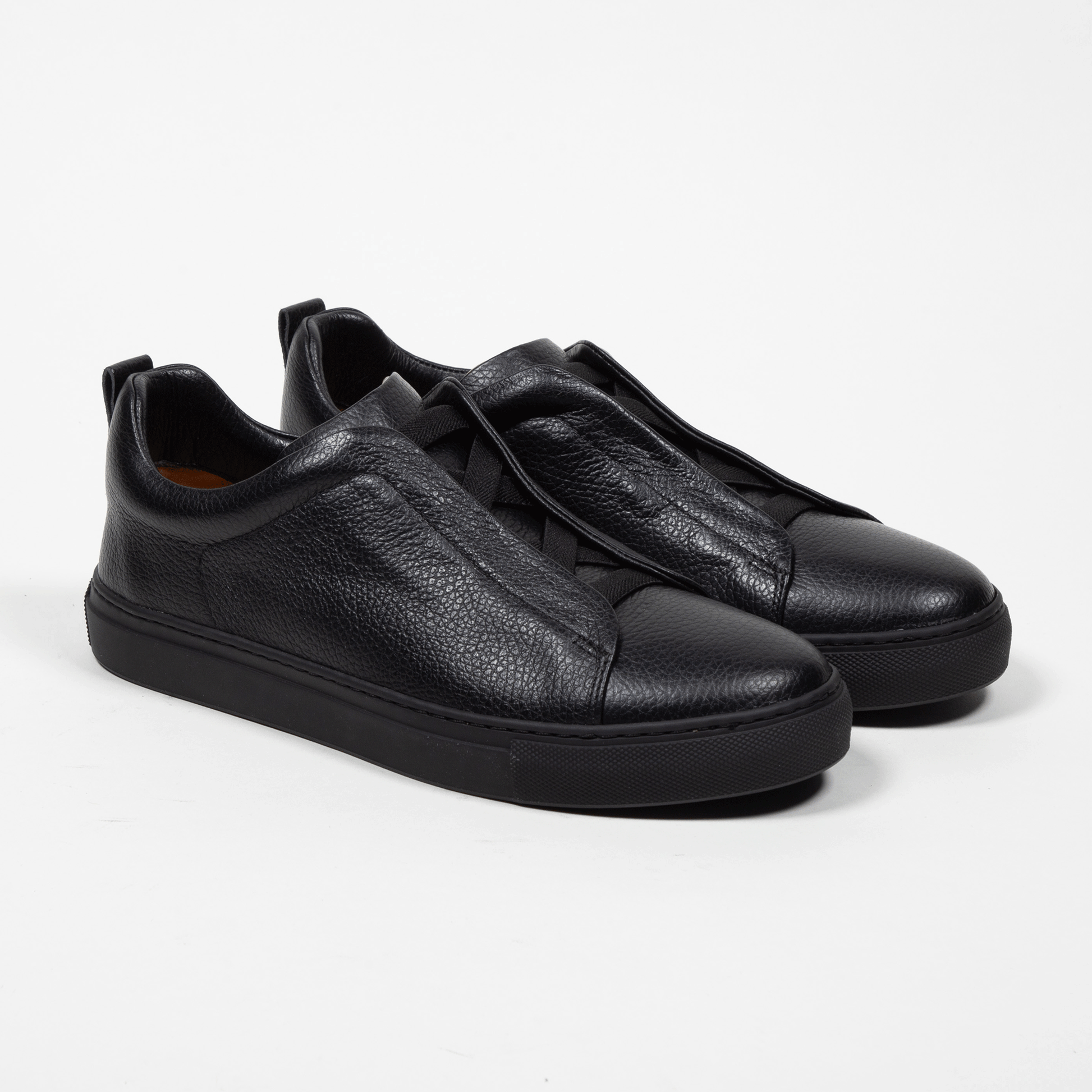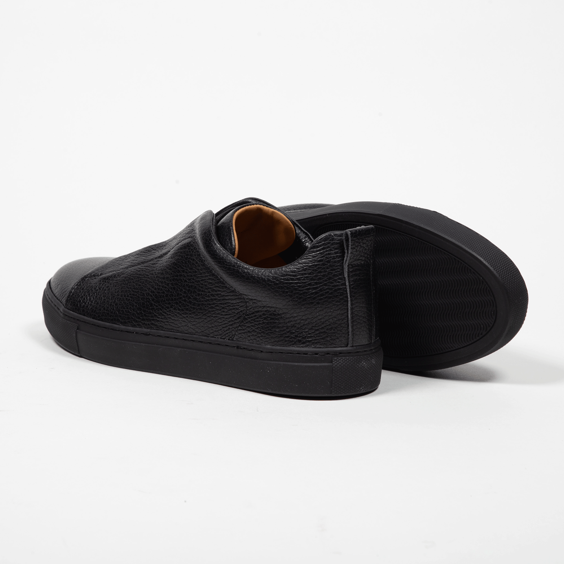Der Suitery Sneaker Sleeve in Schwarz ist aus genarbtem Leder gefertigt und verfügt über eine elastische Lasche anstatt einer Schnürung. Perfekt für einen bequemen und stilvollen Look. Verpassen Sie Ihrem Outfit mit diesem Sneaker das gewisse Etwas. Gefertigt in Spanien.