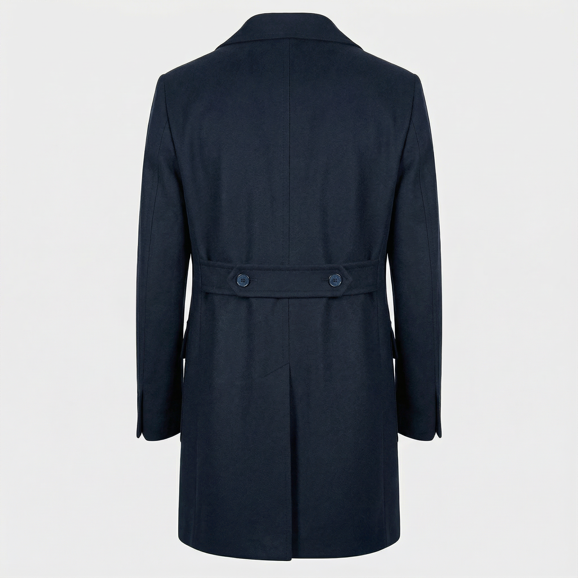 Dieser elegante Wollmantel in Navy besticht durch seine klassische Zweireiher-Silhouette und hochwertige Verarbeitung. Gefertigt aus reiner Wolle von Vitale Barberis Canonico, einem der renommiertesten italienischen Wollhersteller, bietet das Stück außergewöhnliche Qualität und Langlebigkeit. Die dichte Wollstruktur sorgt für optimale Wärmeisolation und natürliche Atmungsaktivität. Das zeitlose Design macht den Mantel zu einem vielseitigen Begleiter für geschäftliche und gesellschaftliche Anlässe. Ein Investment in klassische Eleganz und handwerkliche Exzellenz.